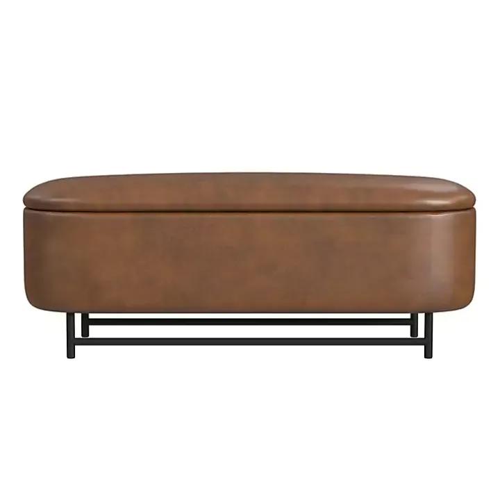 Upgrade any room in your home with this Brown Faux Leather Metal Storage Bench! Not only is this bench stylish, its storage compartment will help keep your space clutter-free with a modern look.