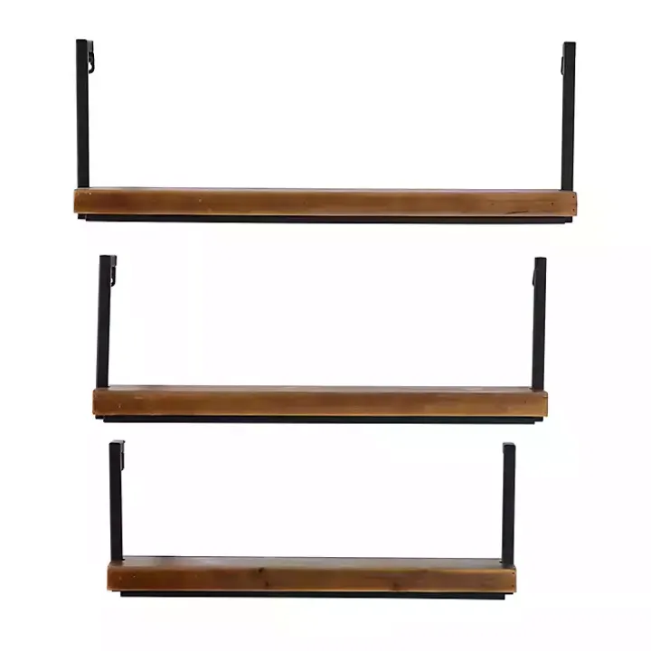 Fashion and function come together beautifully with our Brown Wood Black Metal Frame 3-pc. Wall Shelves. You’ll love how these shelves look hanging up in your home.