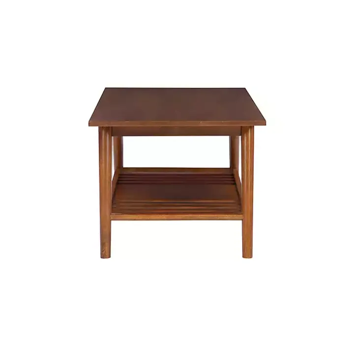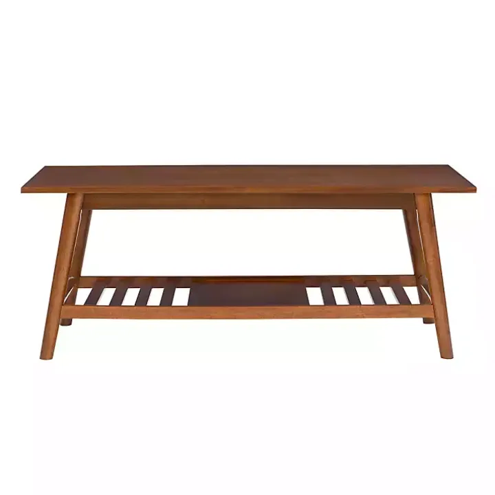 The Brown Wood Slatted Bottom Shelf Coffee Table is the perfect way to add midcentury modern flair to your living room. Display all your boardgames, books, and décor on this stunning piece!