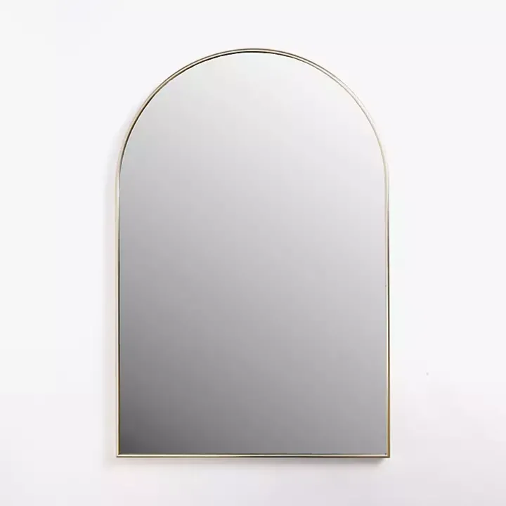 Reflect your style with the timeless look of our Champagne Nouveau Arched Wall Mirror. Its clean lines and modern, minimalist frame will instantly refresh your space!