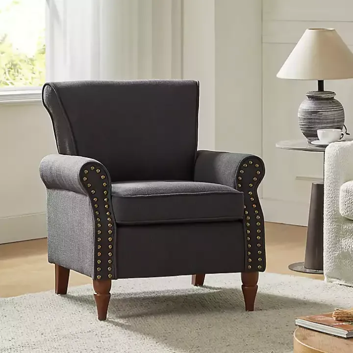 Elevate your space with both sophistication and comfort! This Charcoal Upholstered Henry Armchair has a perfect blend of traditional and contemporary styles to complement any home. Its thick cushion will make relaxation easier than ever!