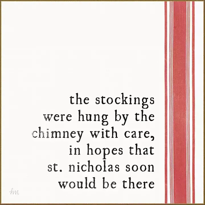 - Features the lines “the stockings were hung by the chimney with care, in hopes that St. Nicholas soon would be there”