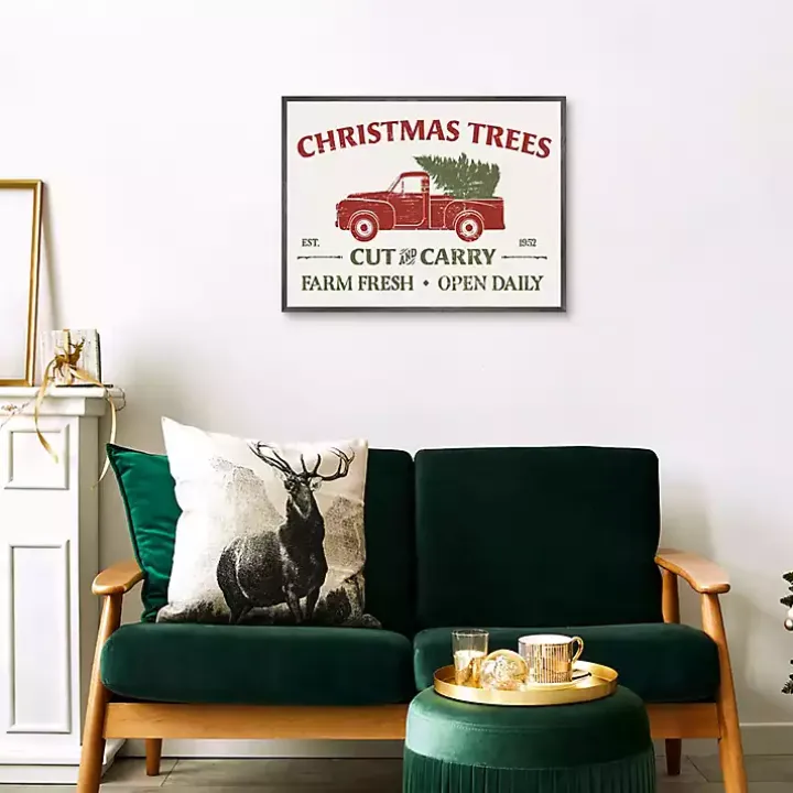 Deck your halls with this Christmas Trees Truck Framed Canvas Print. With a sturdy frame, this piece will bring holiday cheer to your home for years to come!
