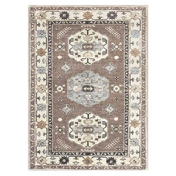 The ornate design of this Coffee Shary Washable Area Rug will give your space a beautiful warmth. Plus, its convenient, washable design helps keep your home clean!