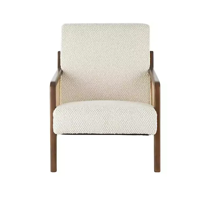 Bring a sophisticated look to your home with this Cream Boucle & Rattan Accent Chair! Inspired by mid-century modern finishes and silhouettes, you’ll love that this chair is both stylish and comfortable!