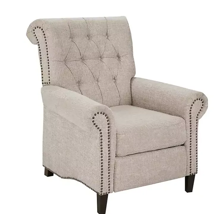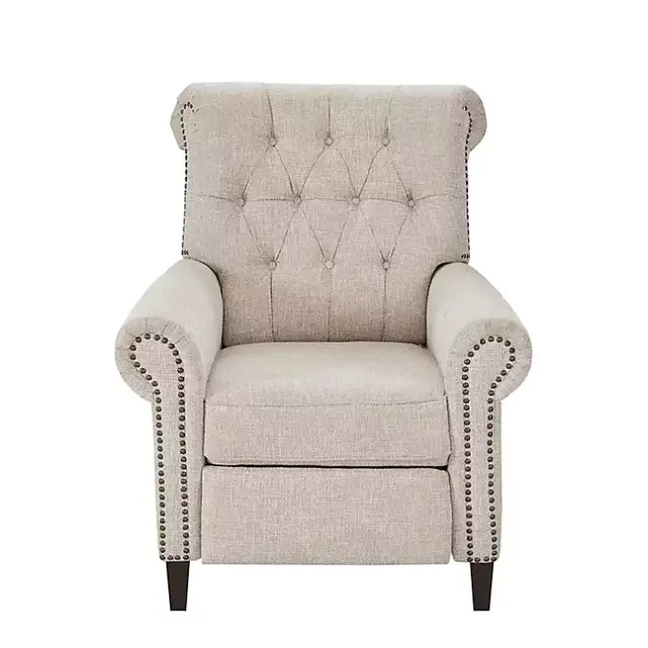 Kick back and relax in our Cream Tufted Back Nailhead Trim Recliner Armchair. You’ll love propping your feet up and lounging in this comfy armchair.