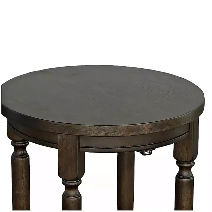 Our Dark Brown Round Charging Accent Table has a traditional look with modern capabilities! This table is perfect for a sitting area, as a nightstand, or whenever you need an extra outlet for almost any device!