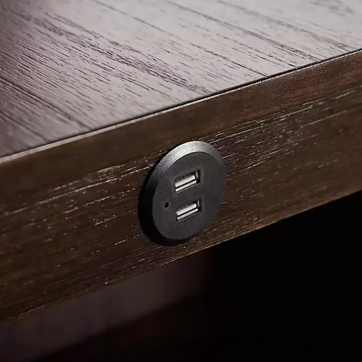 - Table features three (3) shelves and an integrated USB outlet