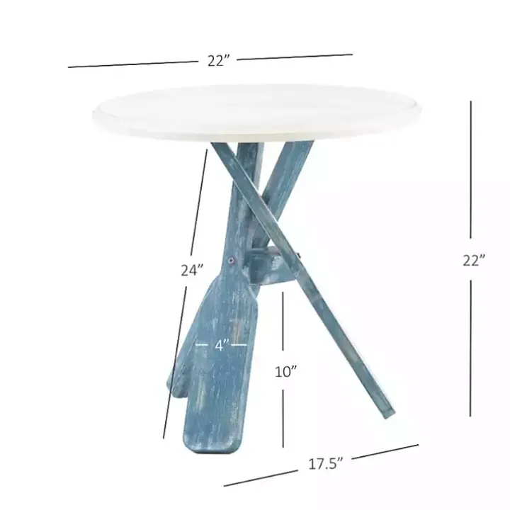 Brimming with coastal charm, this Distressed Blue Oars Coastal Accent Table is a must-have for any nautical enthusiast! You’ll love the distressed wooden oars and its beveled tabletop as an accent piece in your home.