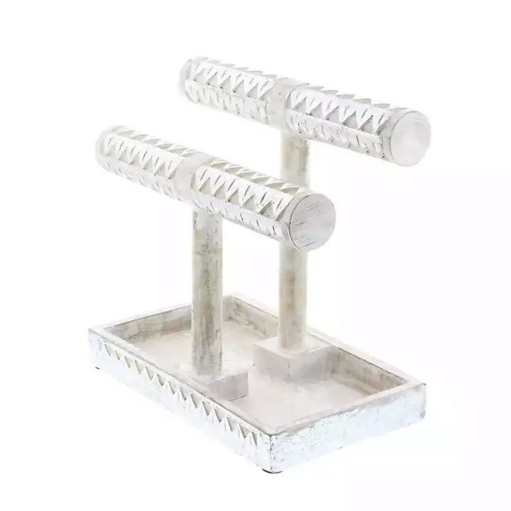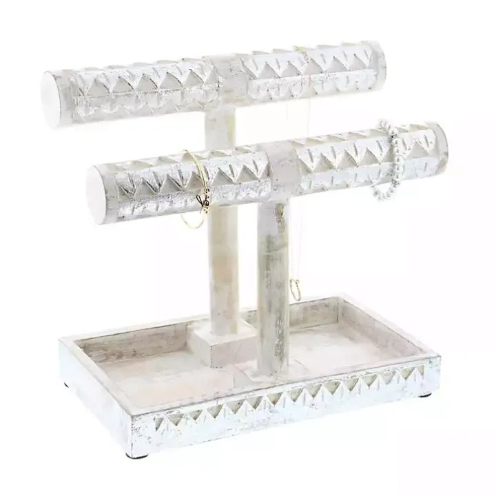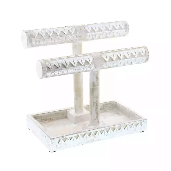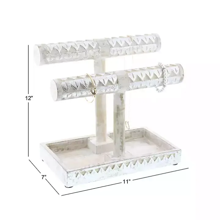 Store your jewelry with style with this Distressed Silver Wood Jewelry Stand. Its beautiful and functional design will help keep all your jewelry organized and in one place.
