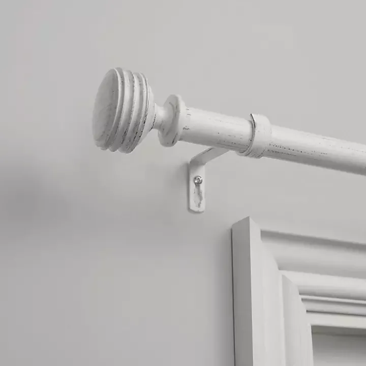 Simple and chic, our Distressed White Duke Curtain Rod will enhance your casual farmhouse style. It features round, ribbed finials in a rustic, whitewashed hue that will be sure to complement any shade.