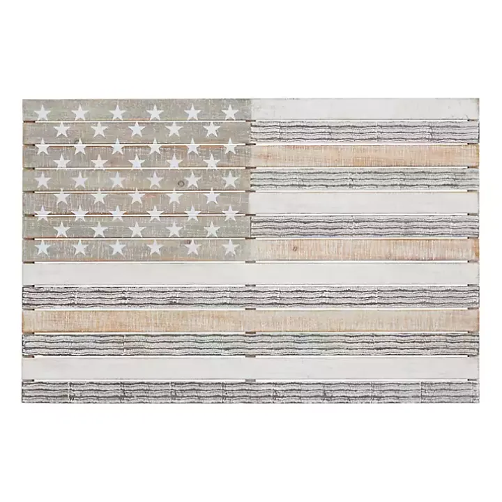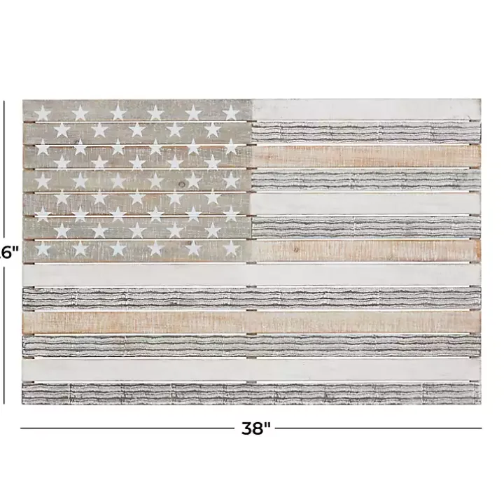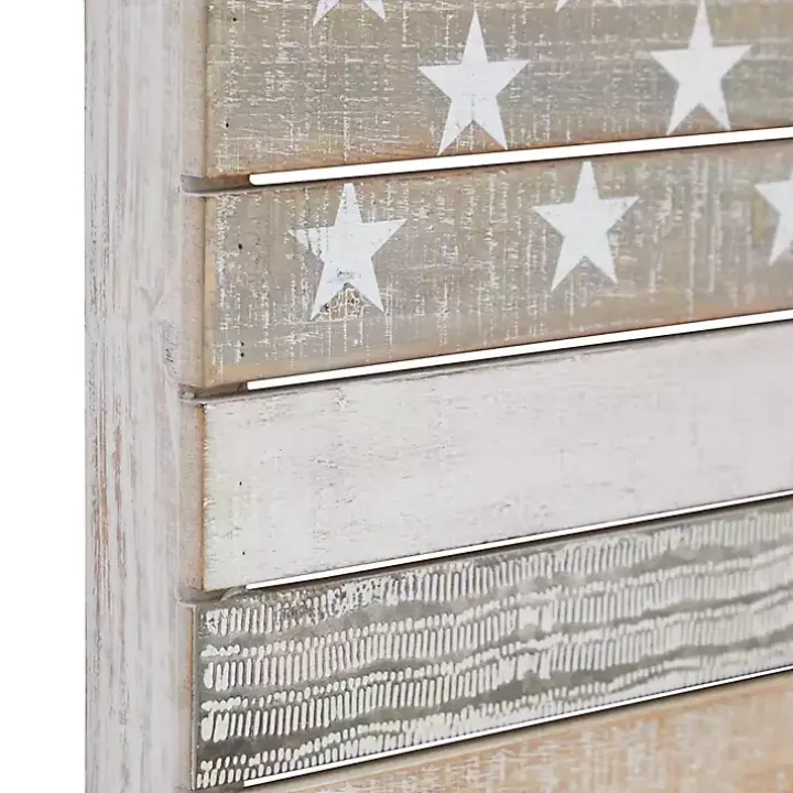 Add a pop of patriotism to your home with this Distressed Wood American Flag Wall Plaque. Its natural tones will beautifully complement rustic and modern farmhouse decors!