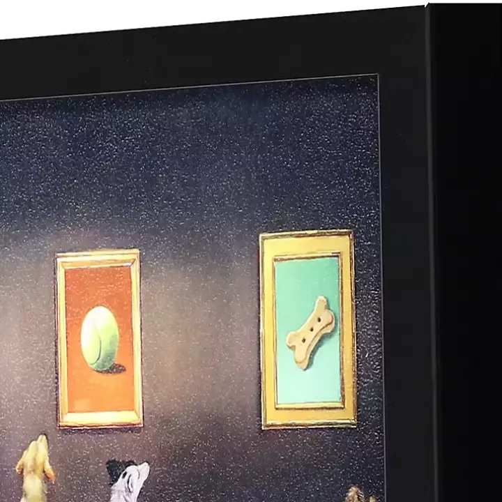 Deliver unique character to your wall with our Dog Museum Framed Art Print. Featuring three dogs appreciating a collection of art, this canvas is sure to be a favorite of your guests.