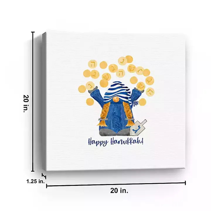 Add some adorable Hanukkah charm to any wall with this Dreidel Gelt Game Gnome Canvas Art Print! Featuring a sweet subject playing a traditional game, this piece is perfect for the holiday.