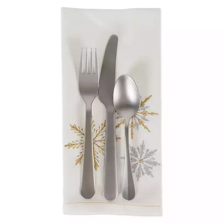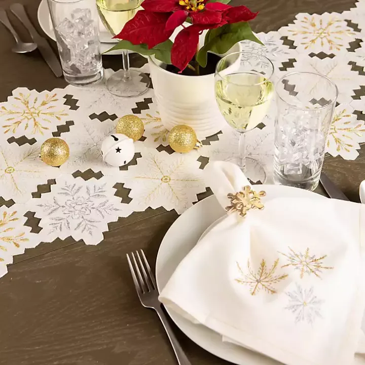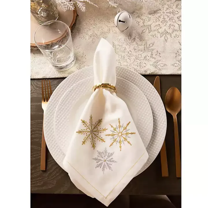 Make your dining table look a little more magical with these Embroidered Sparkle Snowflakes Napkins! Their metallic snowflake design looks classic and elegant.