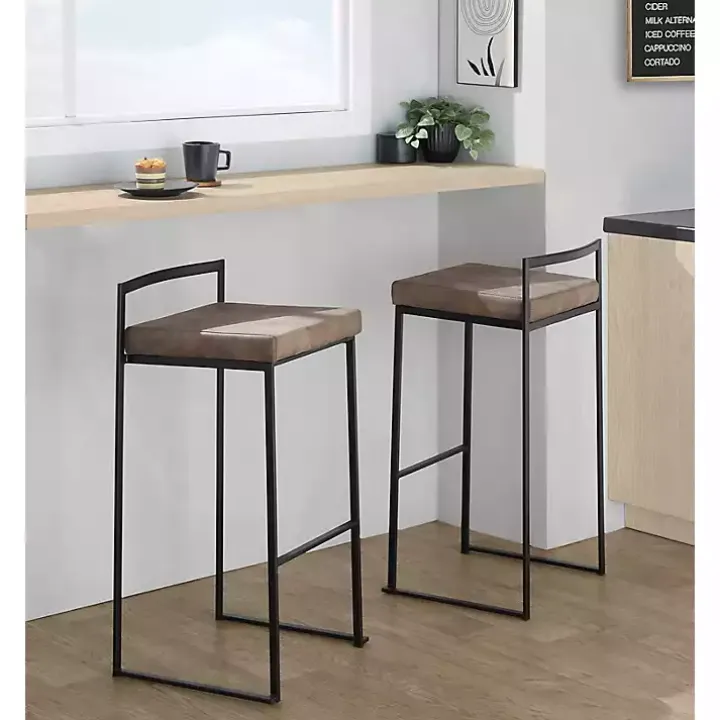 Elevate your space with a modern, minimalist touch! These Fiji Brown Stackable Bar Stools feature a sleek, stackable design to save room when they’re not in use. You’ll love their stylish look!