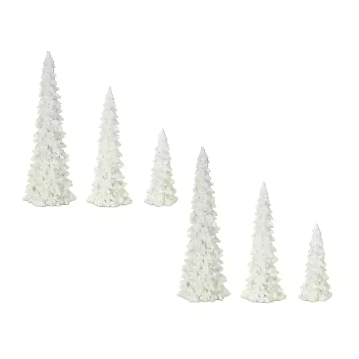 Add a special seasonal charm to any space with these Flocked Resin Cone Tree Figurines. Their light, sparkly design gives them a classic holiday touch!