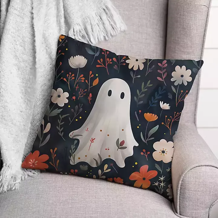 Let this Floral Ghost Throw Pillow haunt your halls this Halloween. The adorable ghost surrounded by fall foliage will bring an ethereal touch to your home!