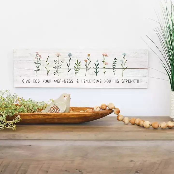 Our Give God Your Weakness Wall Plaque is the perfect little reminder for your home to trust in God! The beautiful floral details add a sweet touch that you’ll love in your entryway, living room, or bedroom!