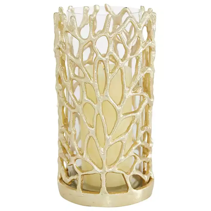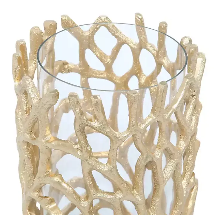 Bring a bit of coastal elegance to your space with this Gold Aluminum Coral Hurricane! Perfect to use as a candle holder or decorative vase, it’s sure to stand out on any tabletop.