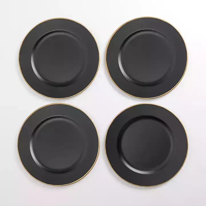 Take your table setting to the next level with these Gold Edge Black Chargers. With subtle gold detailing, this set is perfect for everyday meals and elegant dinner parties!