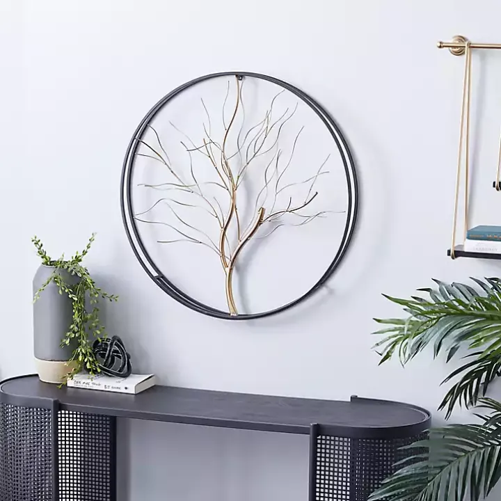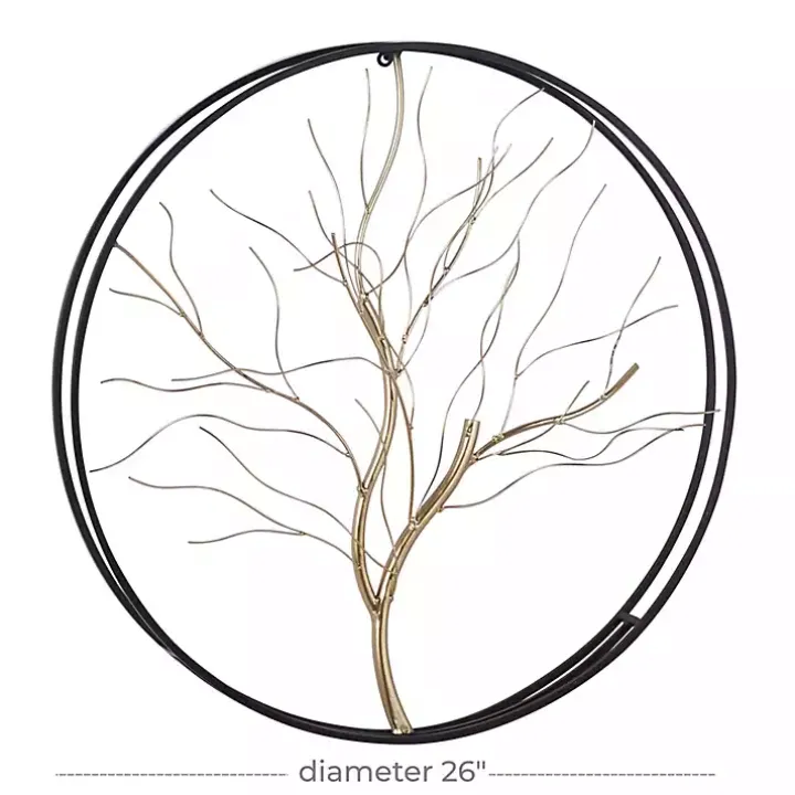 Bring something special to your space with our Gold Iron Leaf-Less Tree Round Frame Wall Plaque. You’ll love the sleek gold finish and leaf design.