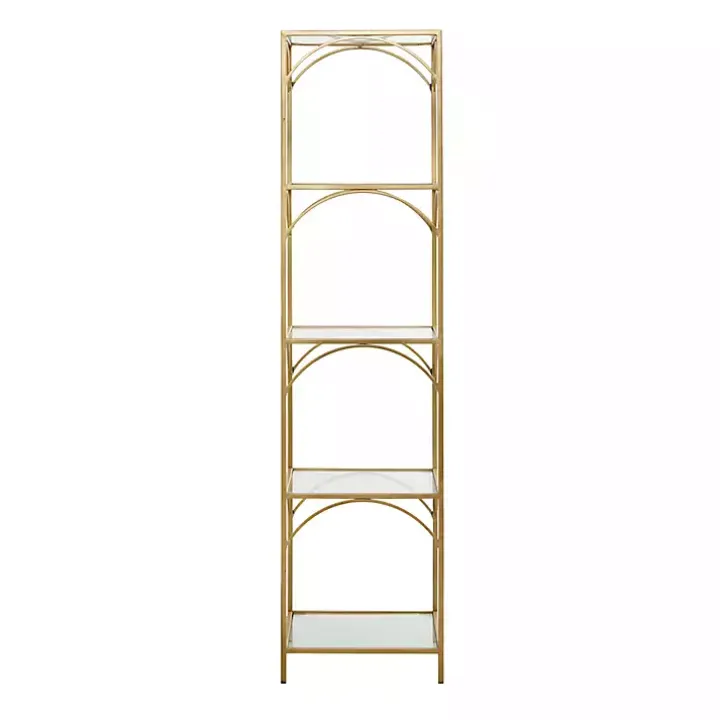 Display your special trinkets and decor on this Gold Metal and Clear Glass 4-Tier Shelf. The square shelves, arched accents, and polished finish result in a stunning, contemporary design.