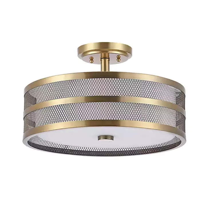 Put a stylish touch of light above your dining table or entryway with this Gold Metal Mesh Flush Mount Light. Its stunning design will add a modern flair to any space!