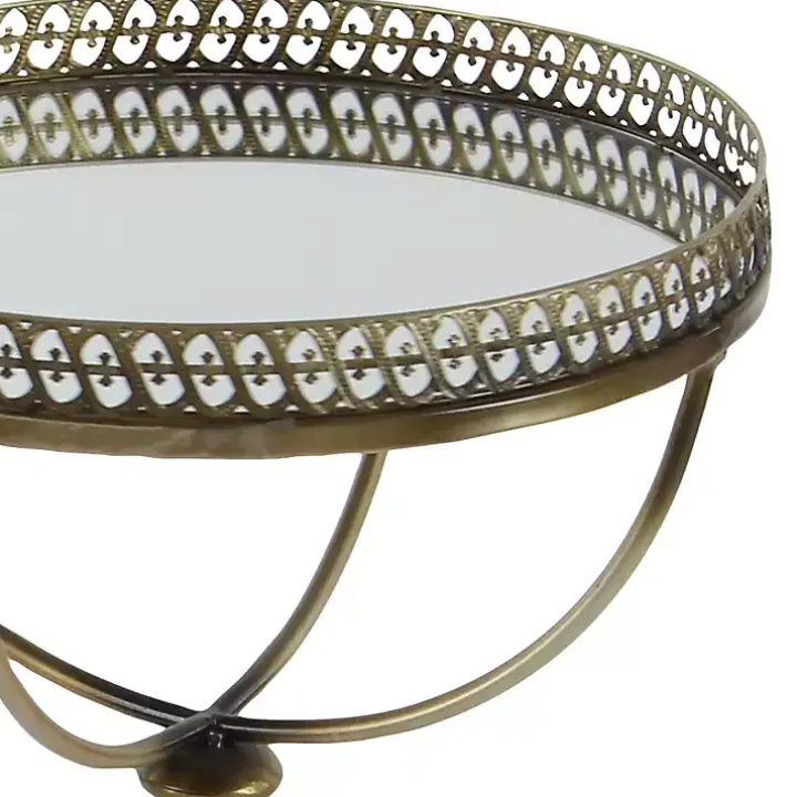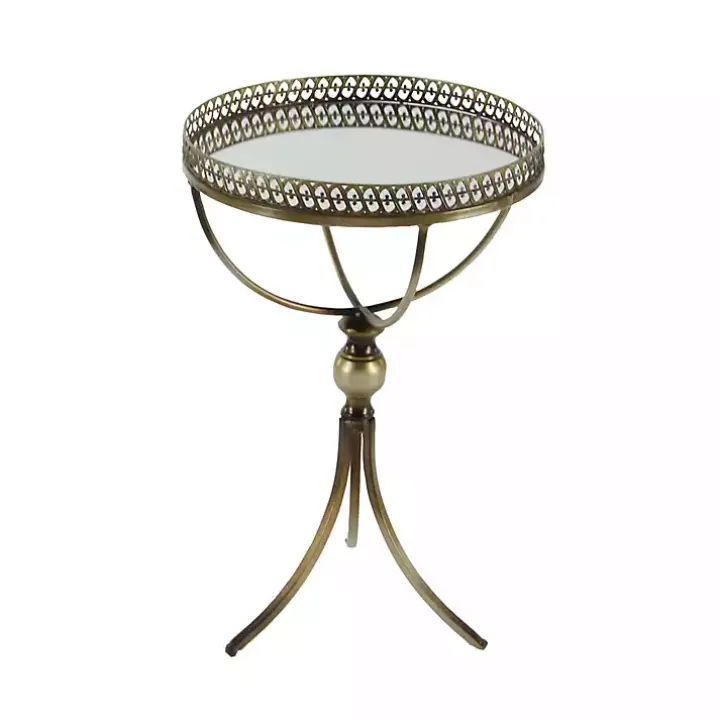 This Gold Mirror Top Metal Accent Table will look perfect next to your sofa or chair. Its gold finish and vintage-inspired style gives it a classic element. Plus, its mirror top makes it one-of-a-kind.