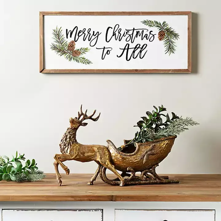 Add a glamorous touch to your Christmas decor with this Gold Reindeer with Sleigh Figurine. Its elegant style is perfect for filling with some faux pine or holly!