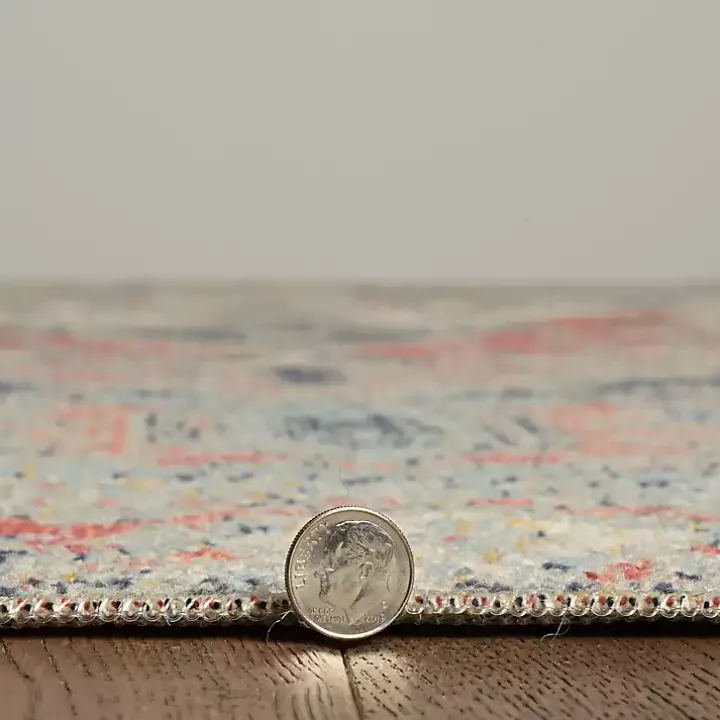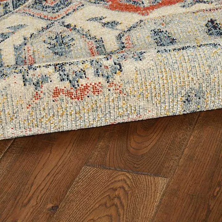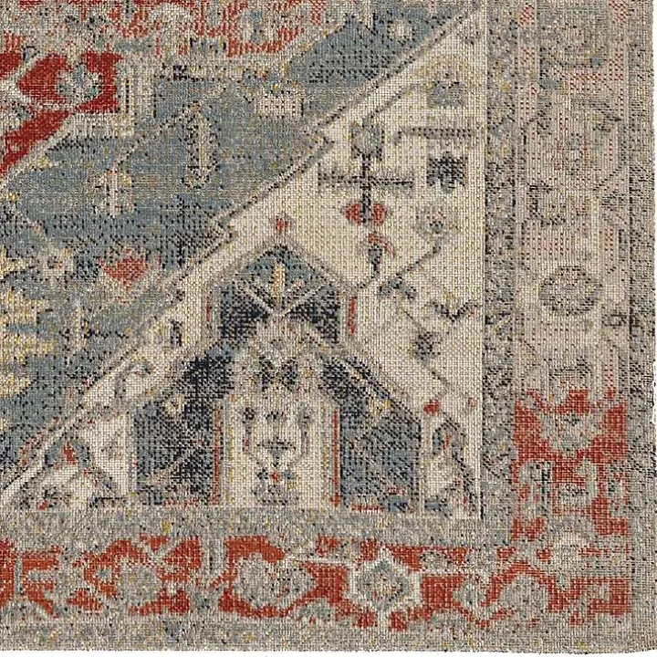Fill your floors with the bold style of this Gray and Blue Traditional Medallion Area Rug. Hues of red pop against neutral tones to create a compelling design!
