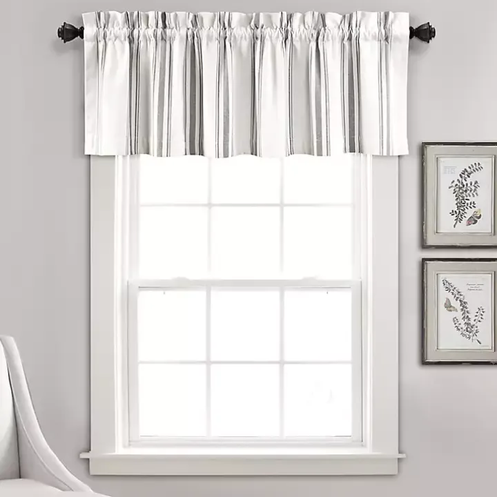 Create a clean window design with our Gray and White Farmhouse Stripe Valance. The timeless look of this curtain will add country charm to any room in your home.