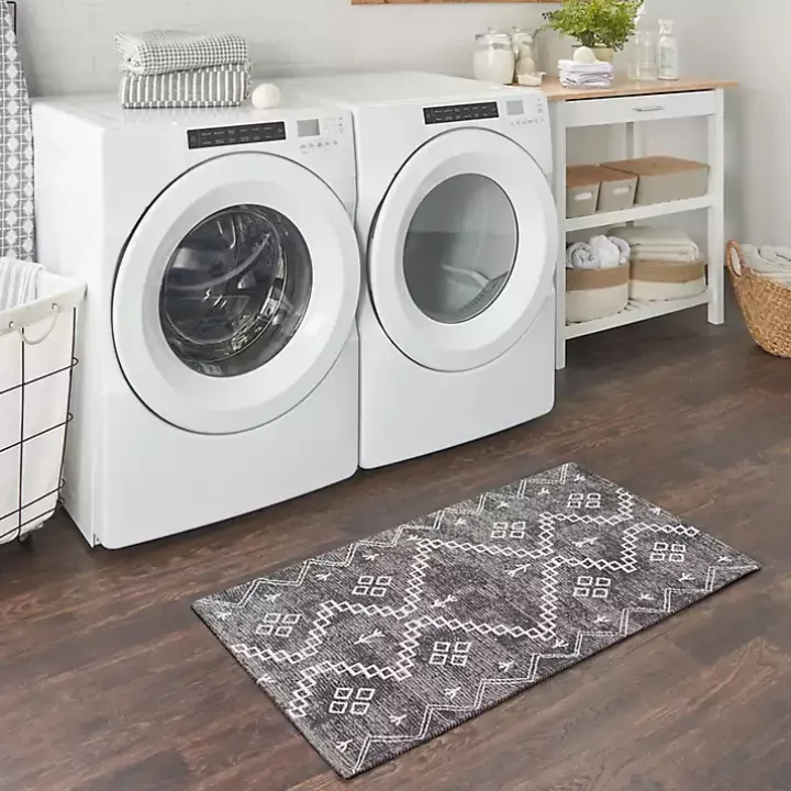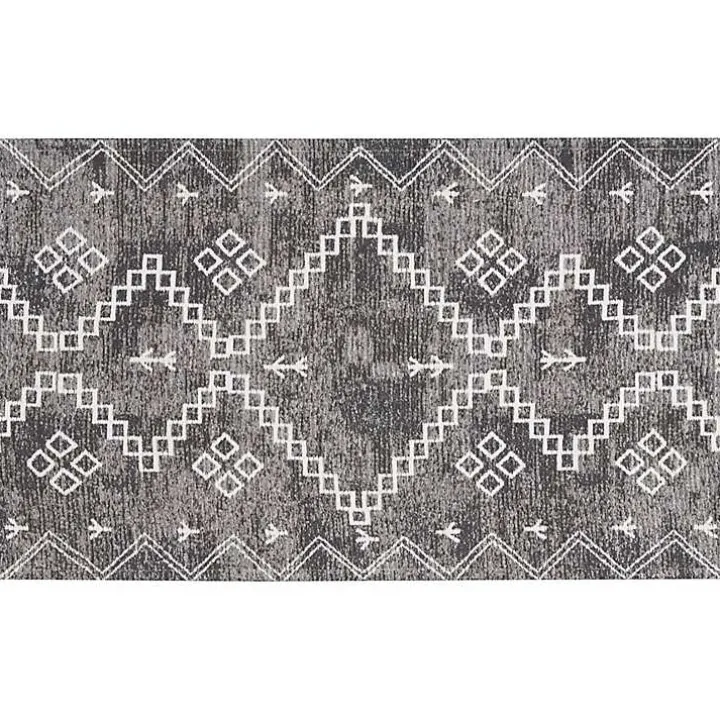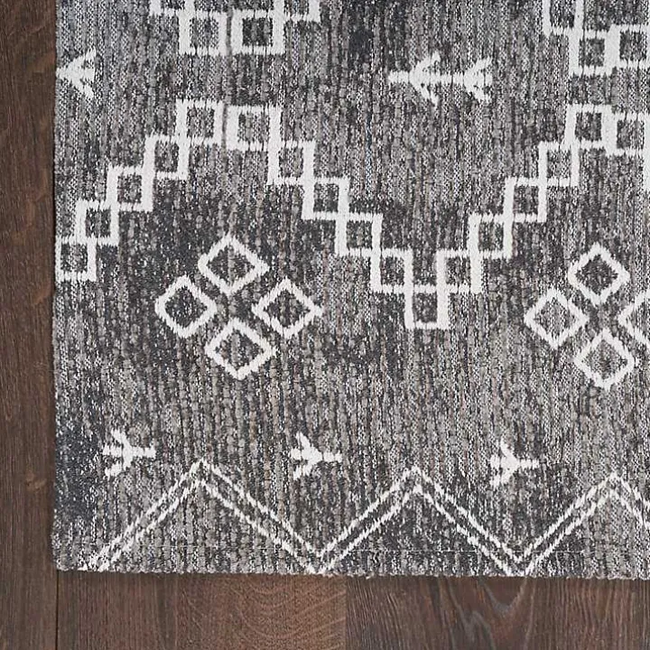 Add a calming element to your small space! Featuring versatile colors, our Gray Distressed Geo Markings Accent Rug is the perfect addition to a bohemian home.