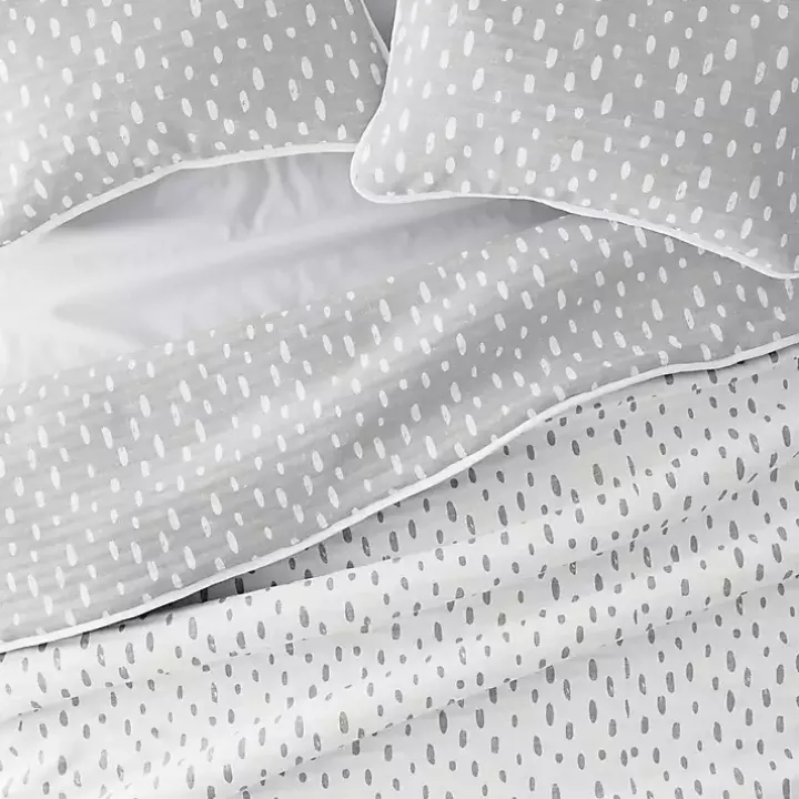 Go from cool gray to crisp white with this Gray Dotted Reversible 3-pc. Queen Quilt Set. Featuring a two-sided design, this set allows you to freshen up your bedroom in a snap!