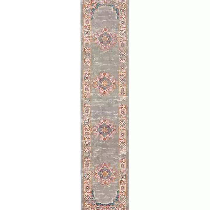 Incorporate vibrant color into your space with this Gray & Pink Central Motif Botanical Runner! Balanced by a distressed finish, it makes an eye-catching statement without overpowering your decor.