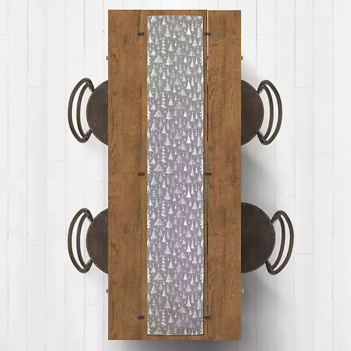 The Gray Sketched Trees Table Runner flaunts an effortless charm that makes it perfect for a holiday brunch or casual Christmas dinner. Lay it on your table setting for a bit of modern flair.