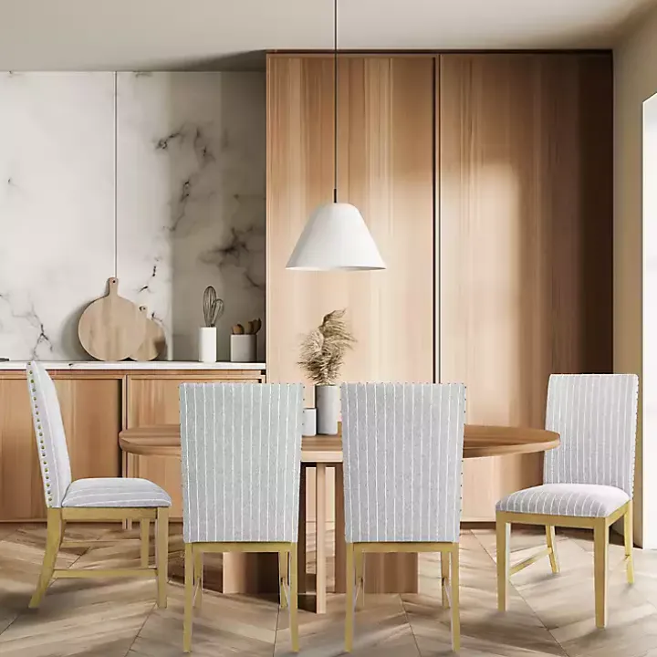 Refresh your dining room with these Gray Stripes Nailhead Dining Chairs! You’ll love how the striped design accents your space. The gray hues can complement several decor styles, from farmhouse to contemporary!