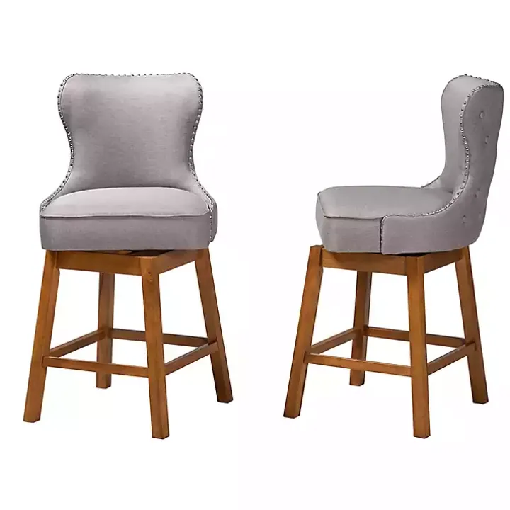 Create a comfortable dining nook in your home with the set of Gray Tufted Back Swivel Counter Stools. Characterized by its curvy shape and two tone finish, it lends a modern touch to any setting.