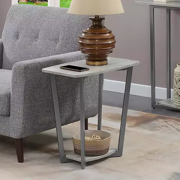 Add a modern touch to your living space with this Graywash Joanne Accent Table! The sleek black metal and slate gray combination makes this table perfect for a contemporary look.