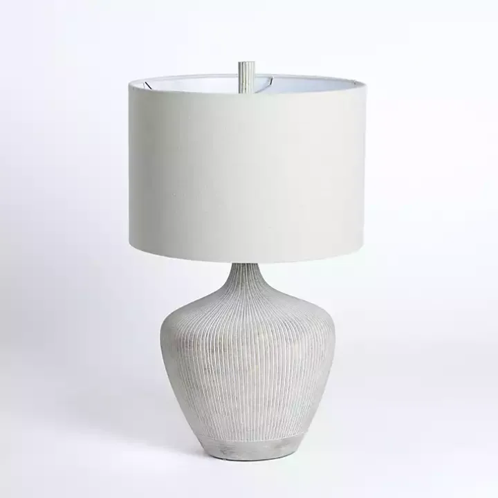 Elevate your space with our Graywash Ribbed Urn Table Lamp! This sophisticated lamp features a textured ribbed base to bring dimension and style to your home. You’ll love the soft graywash finish!