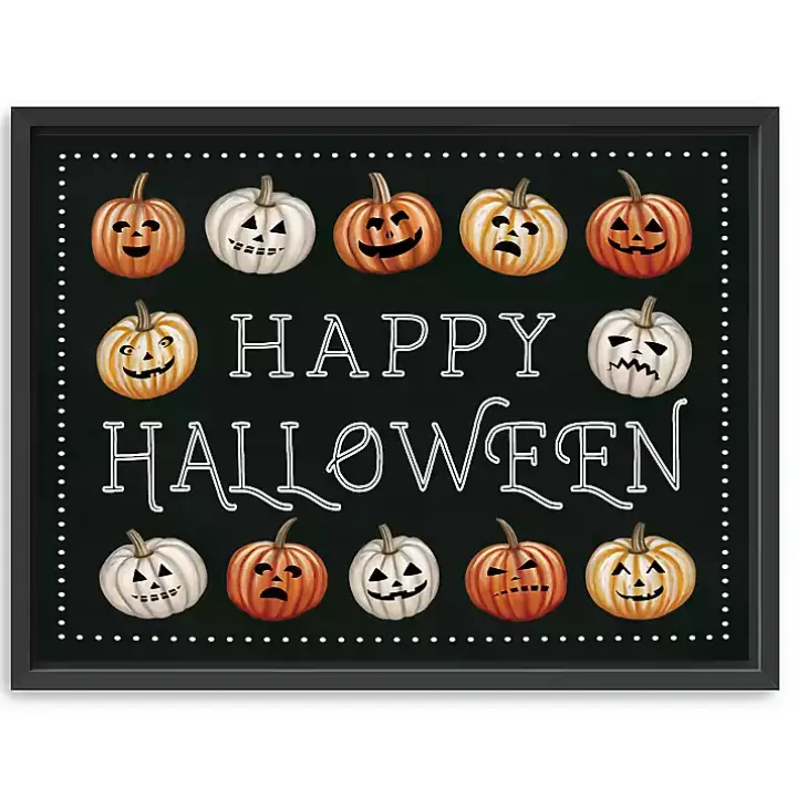 This Happy Halloween Jack-o-Lanterns Framed Art Print is sure to inspire your next jack-o-lantern design this season! This print is perfect for giving your home a festive, slightly spooky look this Halloween!