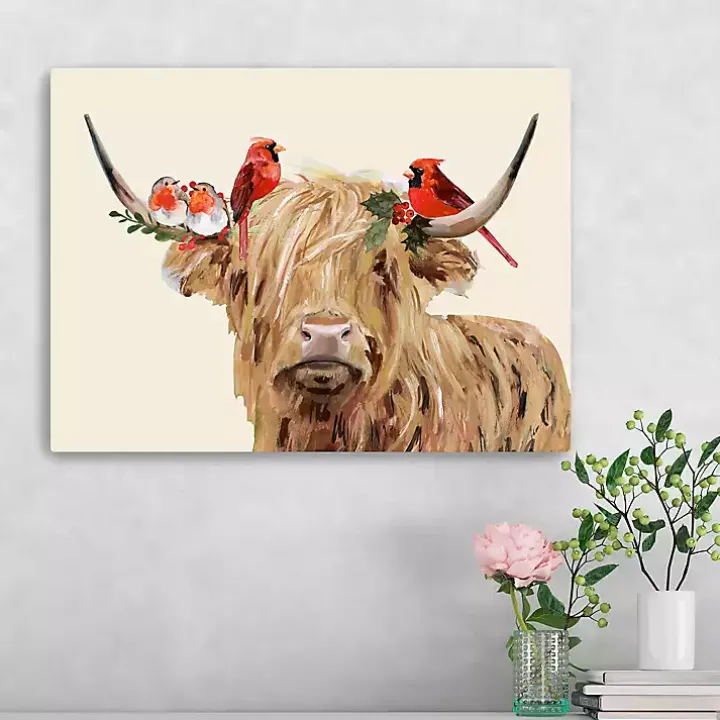 Add a rustic charm to your Christmas decor with this Holiday Cow Canvas Art Print. Its adorable style will put a sweet, seasonal touch on your walls!
