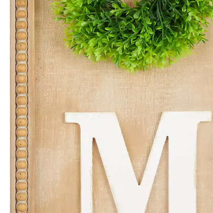 Add a warm, sentimental element to your wall decor with this Home Wreath Wood Panel Wall Plaque. Its beaded frame and wreath accent will put a rustic charm on any space!