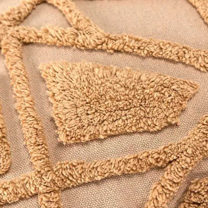 - Features a tufted geometric design
