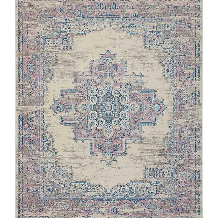 Tie your farmhouse or French country aesthetic together with this Ivory and Pink Central Medallion Area Rug. The soothing colors and distressed finish will beautify your space with vintage charm.