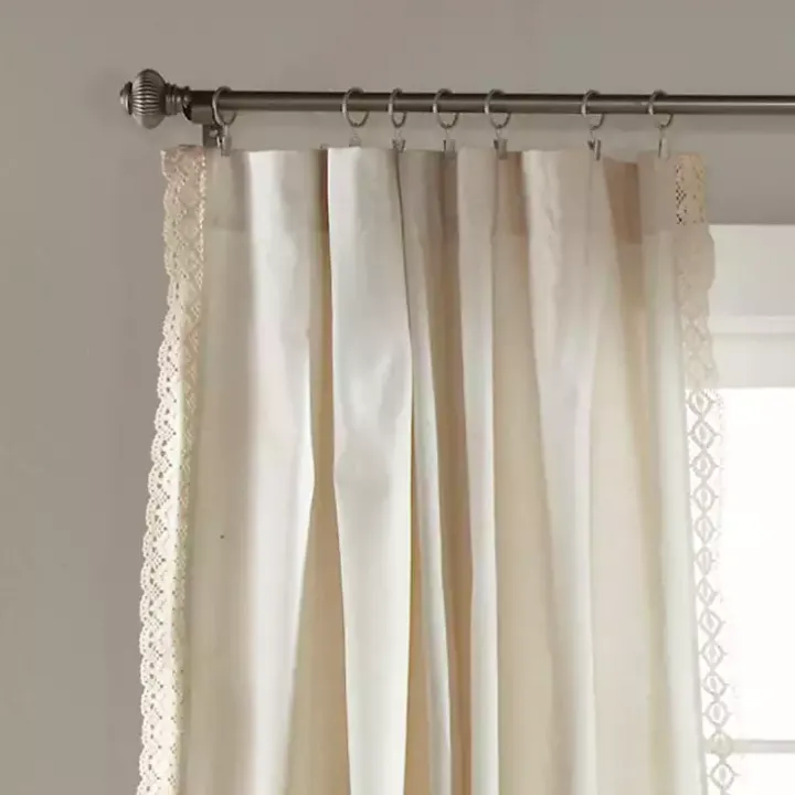 Enrich your bedroom décor with our romantic Ivory Rosalie Curtain Panel Set. This creamy linen blend features a delicate lace trim that will add dimension to your farmhouse finishings.