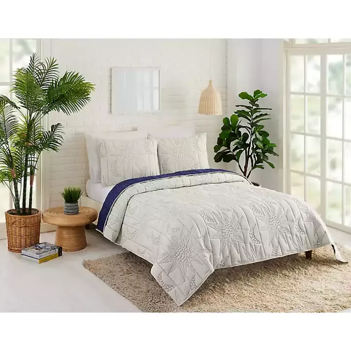 The Justina Blakeney Sun & Moon King Quilt Set features a beautifully stitched celestial design. Perfect for any astrology lover, it brings ethereal beauty into any bedroom!