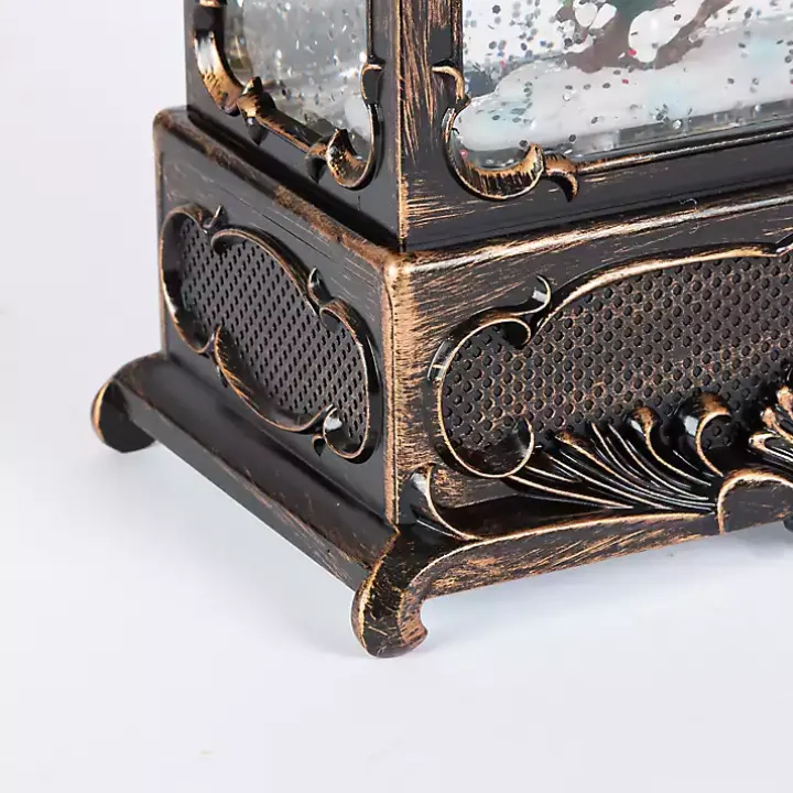 The LED Cardinals on Birdhouse Christmas Water Globe features a soft illumination and spinning motion to create a mesmerizing scene. Showcase this unique decoration on a mantel for a whimsical touch!
