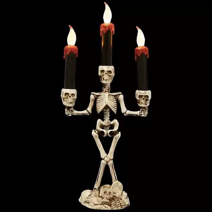 The LED Dripping Skeleton Halloween Candelabra will bring a spine-chilling glow to your home! The flameless candles and red glitter wax create a spooky design.