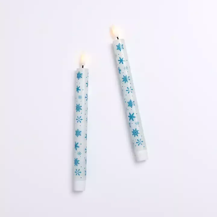 Bring a warm glow to your mantel or dining table centerpiece with the set of LED Snowflake Taper Candles. These festive, flameless candles are perfect for illuminating those chilly winter nights!